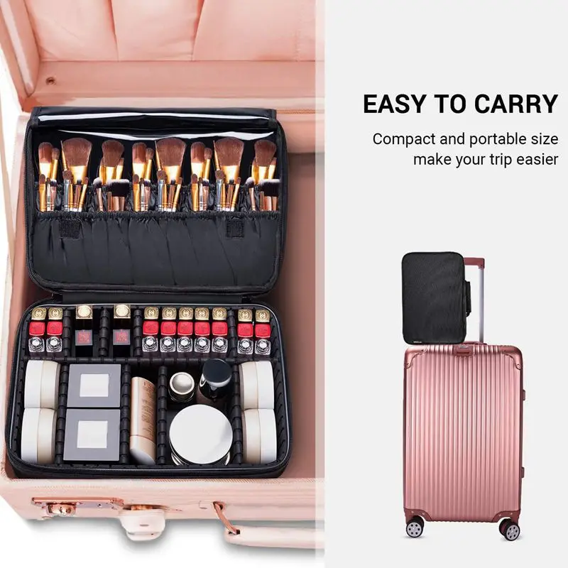 Cheap Makeup Train Case–3 Layers Waterproof Travel Makeup Bag Cosmetic Organizer Kit Artist Storage Case